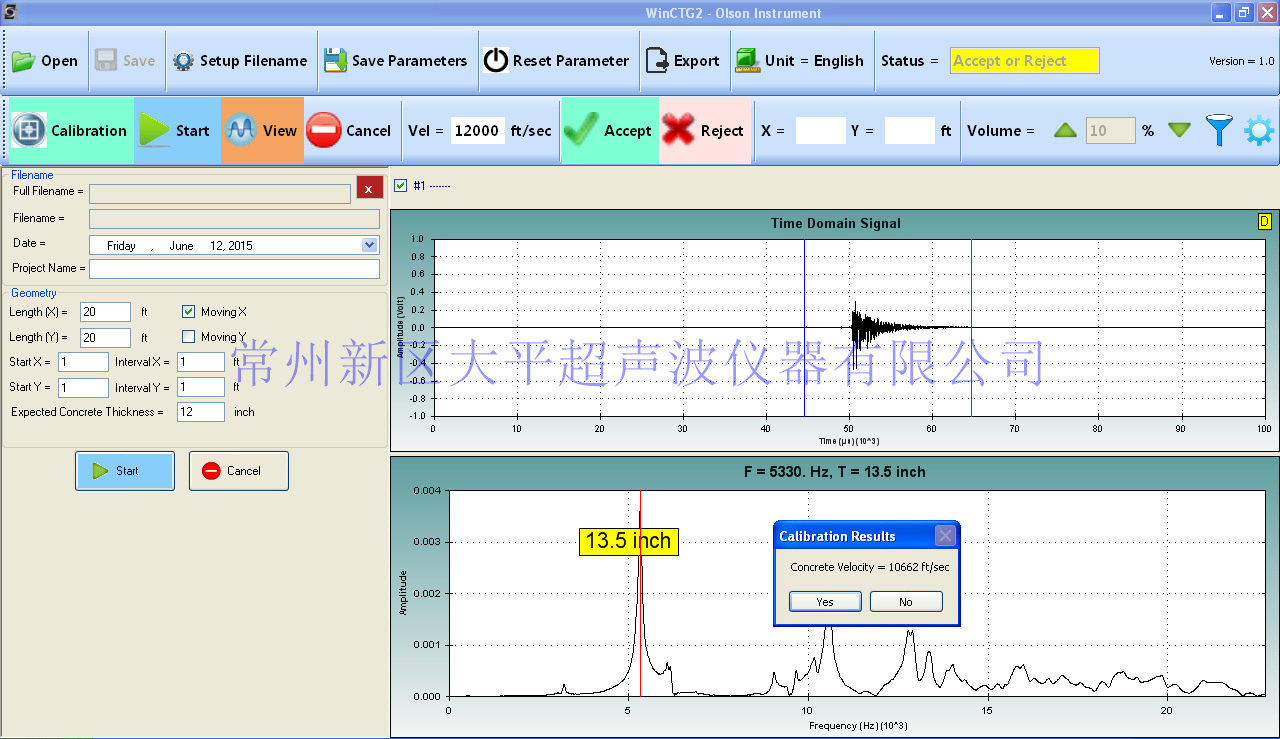 >>在已知厚度的位置可以很輕松的對速度進行校準,或者是使用Olson公司默認的參數(shù)