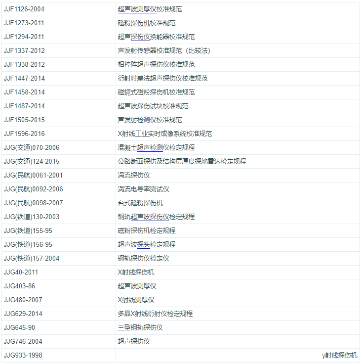 無損檢測儀器、設(shè)備和器材相關(guān)計量檢定規(guī)程和校準(zhǔn)規(guī)范目錄大全